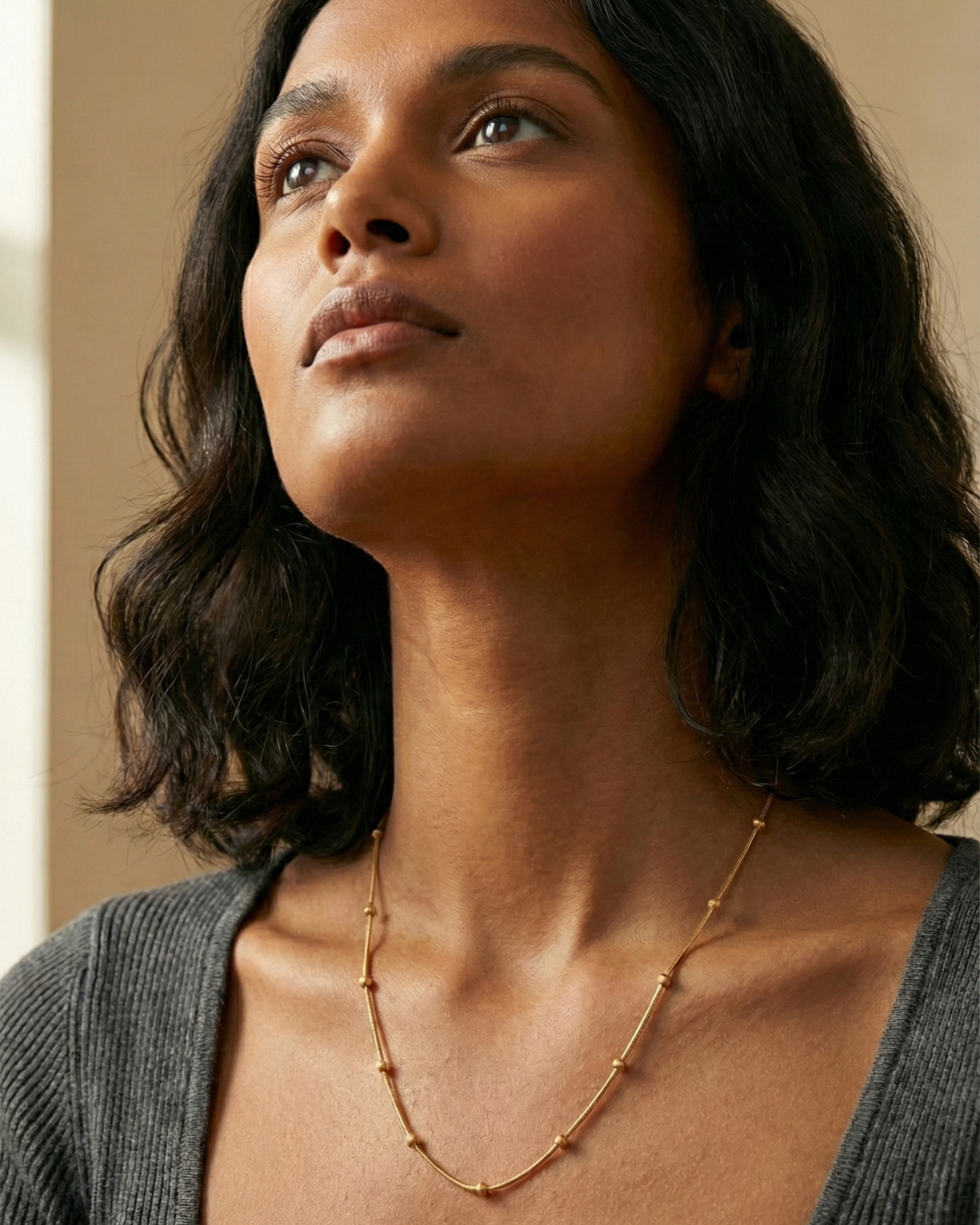 The Bubble Necklace adds a touch of modern elegance to any look. Designed with smooth golden spheres that catch the light beautifully.